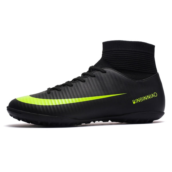 ZHENZU Turf Indoor Black Men Soccer Shoes Kids Cleats Training Football Boots High Ankle Sport Sneakers Size 35-45 Dropshipping